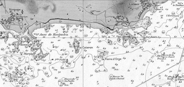 Extrait de la carte de l'île de Groix, Paris : Service hydrologique de la Marine, levée en 1938, 2e édition 1942, n° 5912.