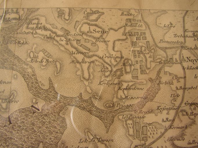 Carte de Cassini de la région de Séné.Carte ancienne.