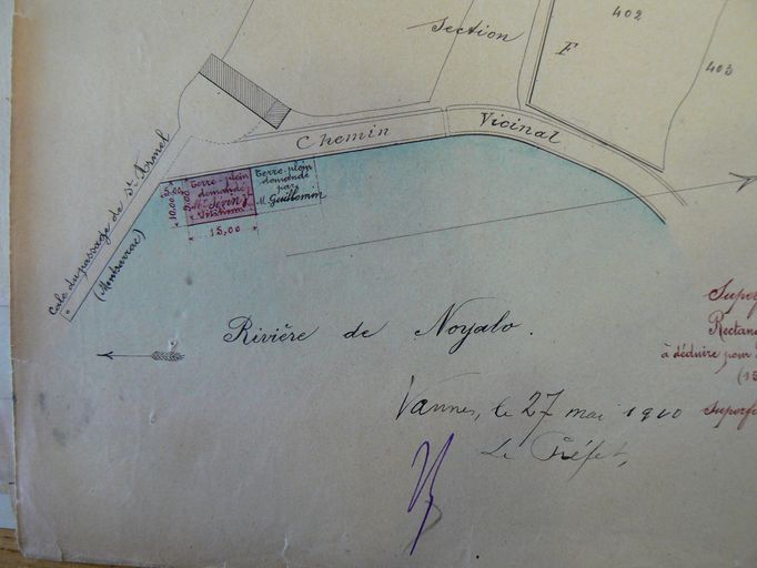 Plan des Ponts-et-Chaussées de 1910 sur lequel figure l'ancien magasin ostréicole, actuellement hangar d'une station biologiqueImmatriculation