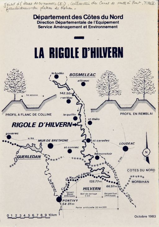 Tracé schématique de la rigole, octobre 1983 (D. D. E. Morbihan, Pontivy)Immatriculation
