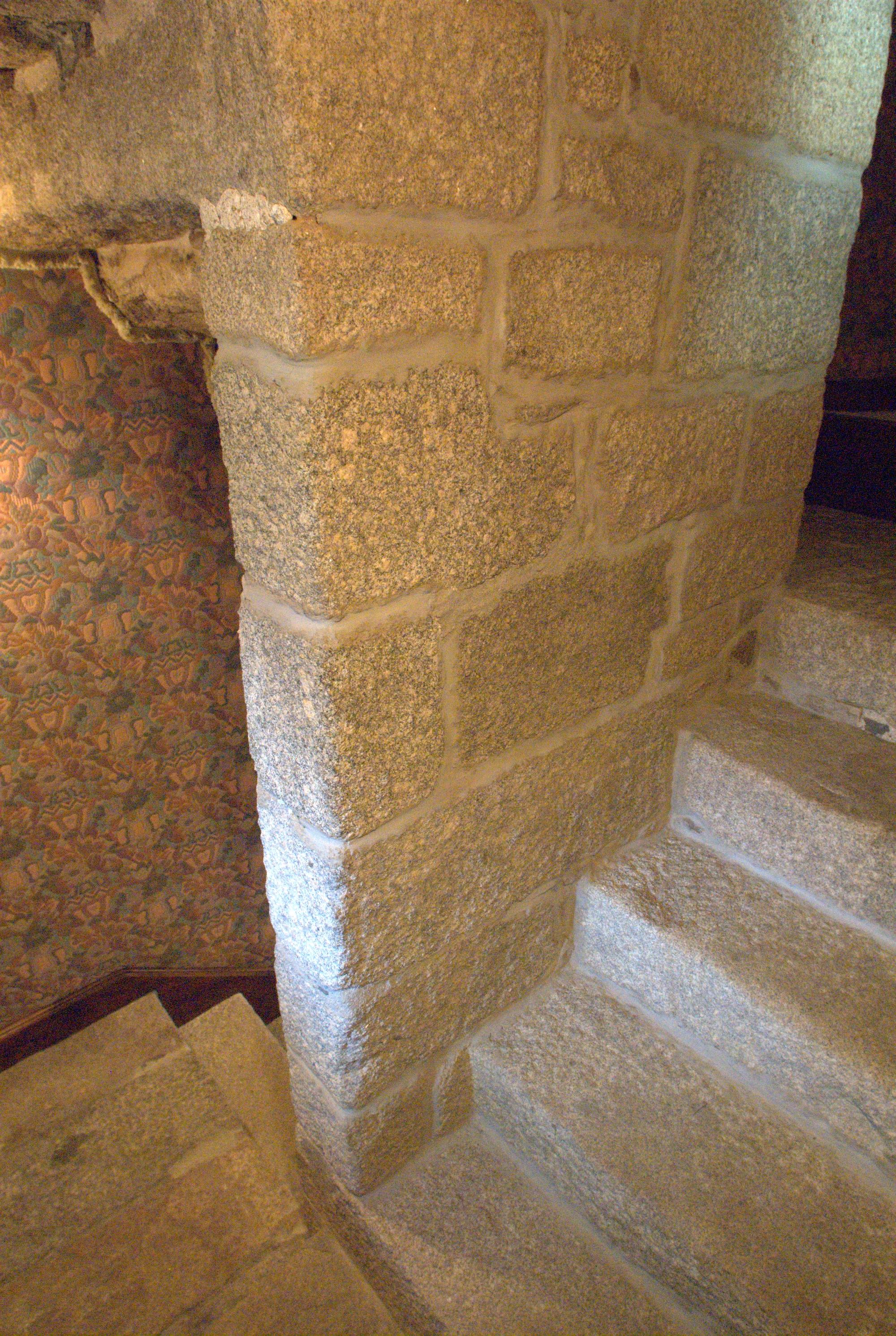 Ploubezre, Coat Arzur : ferme, vue intérieure, escalier droit rampe sur rampeImmatriculation