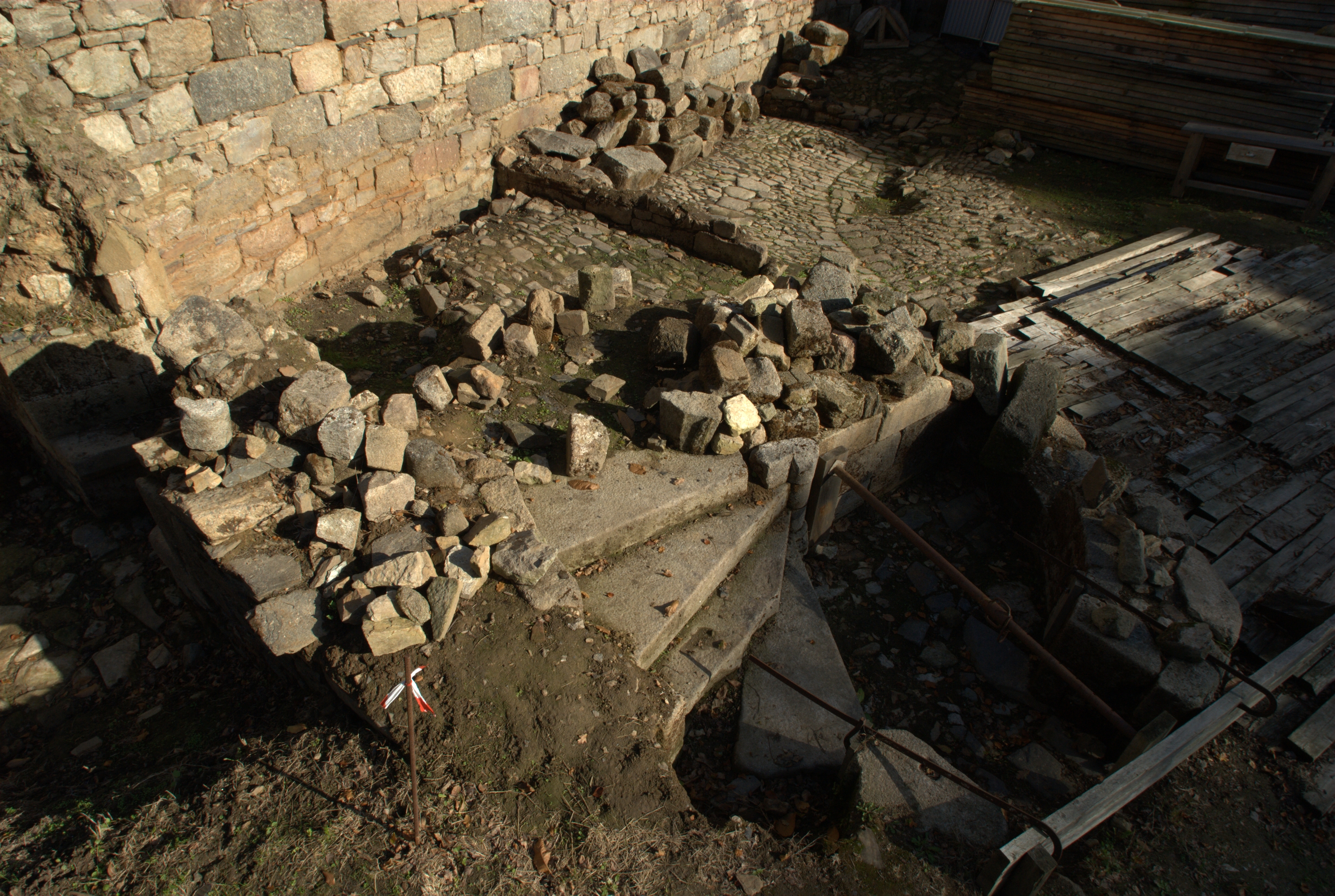 Ploubezre : château fort de Coat Frec, tour d'escalier en vis, photographie de 2009Immatriculation