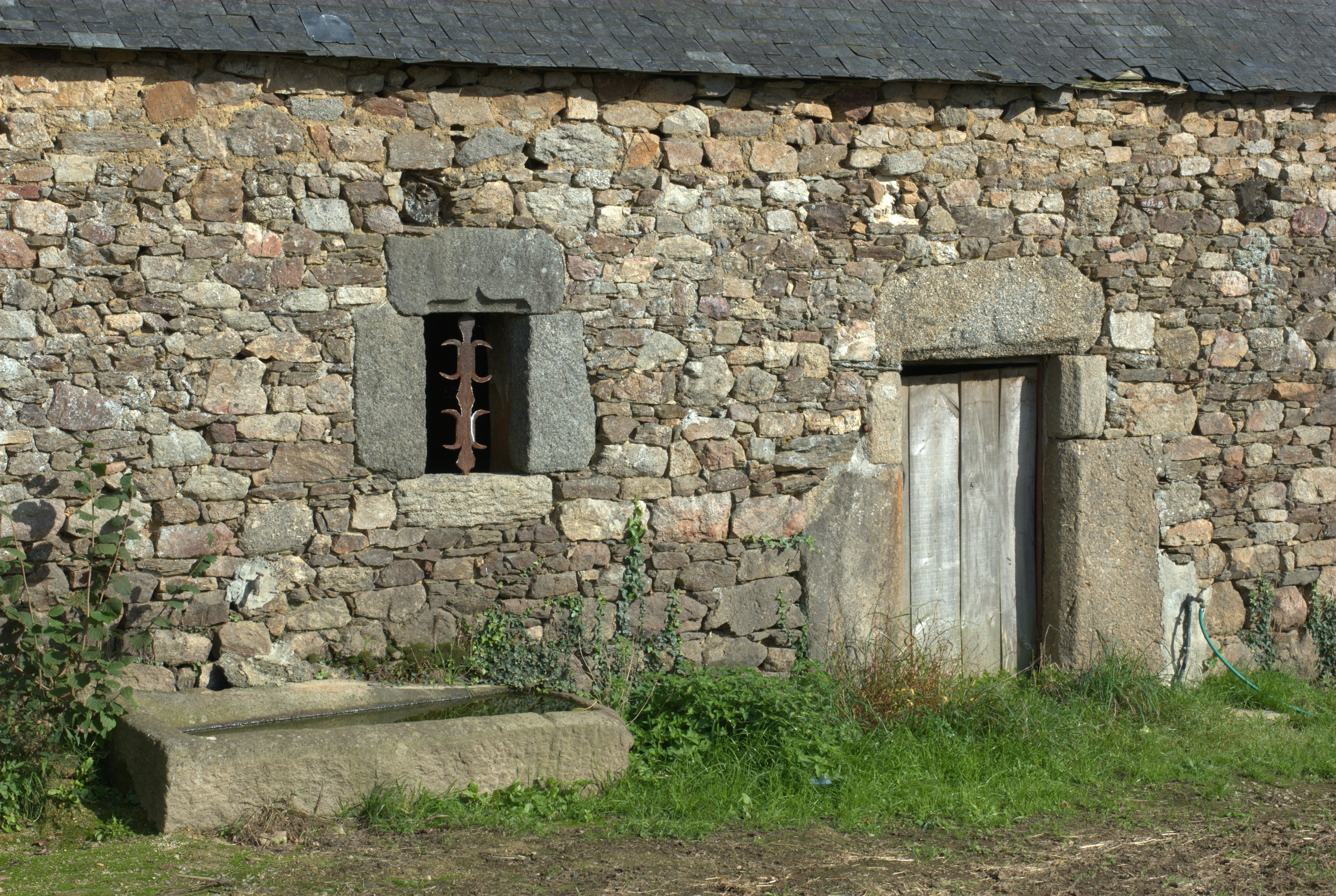 Plufur, Poul ar Vran : ferme située immédiatement à l'ouest du manoir, élévation antérieure orientée vers le sud, photographie de 2009. Cet édifice est datable du début du 16e siècle (linteaux en accolade)Immatriculation