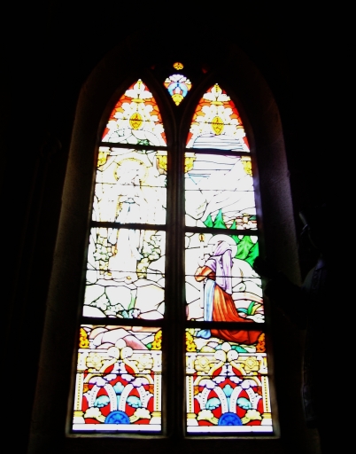 Verrière (2) : apparition de la Vierge à sainte Bernadette de Lourdes, Apparition du Christ à sainte Marguerite-Marie Alacoque, verrière à personnages,