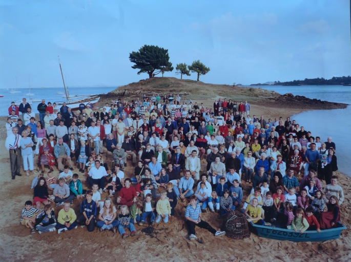 Les habitants de la commune de Lanmodez réunis sur la plage de Castel Hyar en Pors Guyon, pour fêter l'année 2000Immatriculation