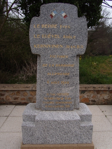 Lanmodez, le Carpont. Monument commémoratif érigé à la mémoire d'Yves Le Berre, d'Adèle Le Guével et de Jean-Baptiste Kernivinen assassinés par les soldats allemands le 6 août 1944Immatriculation
