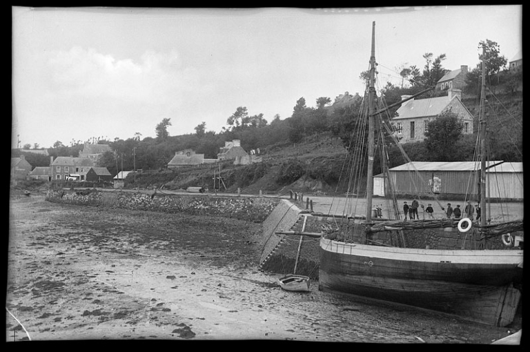 Vue générale du port de Lézardrieux, photographie noir et blanc, par Lacombe, 2ème quart du 20ème siècle (AD 22, fonds Lacombe)Immatriculation