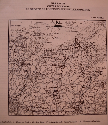 Le groupe de points d'appui de Lézardrieux avec les différents sites légendés (Alain Bohée, collection particulière)Immatriculation