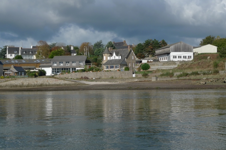 Vue des bassins à huîtres et des anciens bâtiments de l'entreprise MahéoImmatriculation