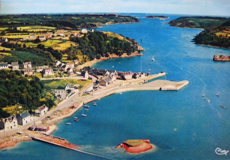 Vue des vestiges de la jetée de Lézardrieux, détruite en 1944 et des nouveaux édifices du port, vers 1960 (carte postale, collection particulière)Immatriculation