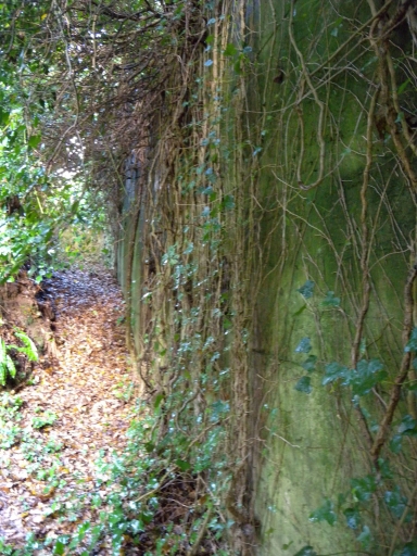 Vue du couloir d'accès au blockhaus et de la façade envahie par la végétationImmatriculation