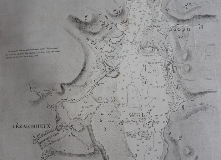 Extrait de la carte SHOM, établie en 1868 : la rade et le port de Lézardrieux (EPSHOM, collection particulière)Immatriculation