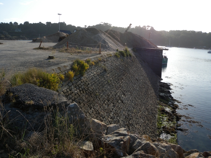 Vue du mur du quai Sud-Ouest construit en moellons de granite, avec un fruit importantImmatriculation
