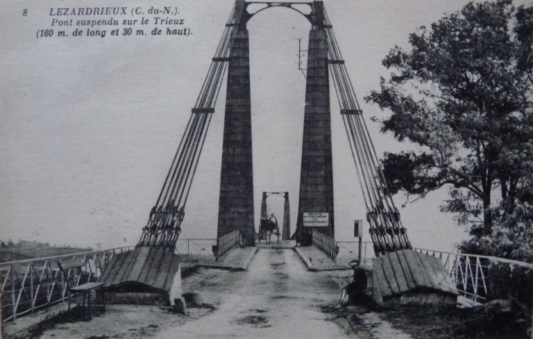 Vue de l'ancien pont de Lézardrieux, avec une charrette, début 20ème siècle (carte postale, collection particulière)Immatriculation