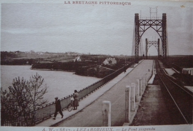 Vue du nouveau pont de Lézardrieux, à double voie charretière et voie ferrée, à son neuvage (carte postale, collection particulière)Immatriculation