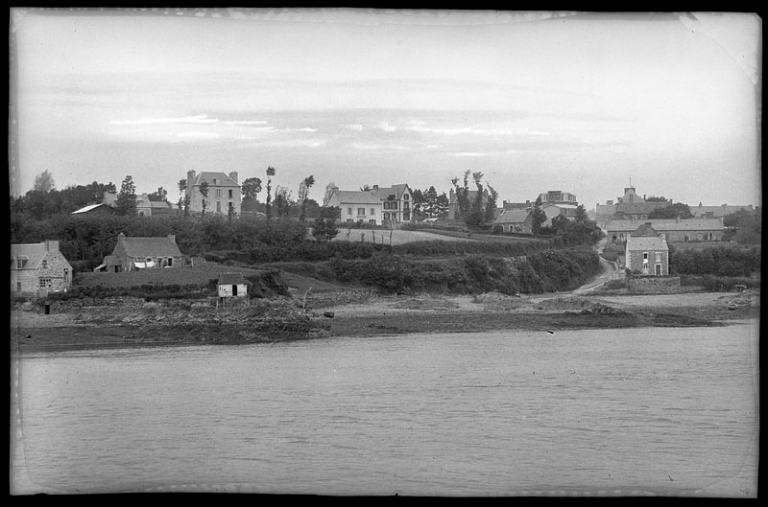 Front de mer de Traou ar Treiz, 1er quart 20ème siècle : remarquer la cabane de surveillance des parcs à huîtres (fond Lacombe, AD 22)Immatriculation
