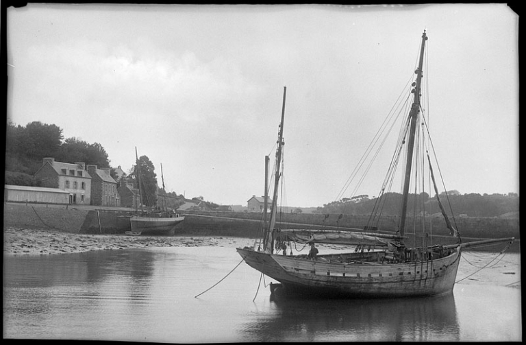 Yawl de cabotage, échoué devant les quais, 1er quart 20ème siècle (fond Lacombe, AD 22)Immatriculation