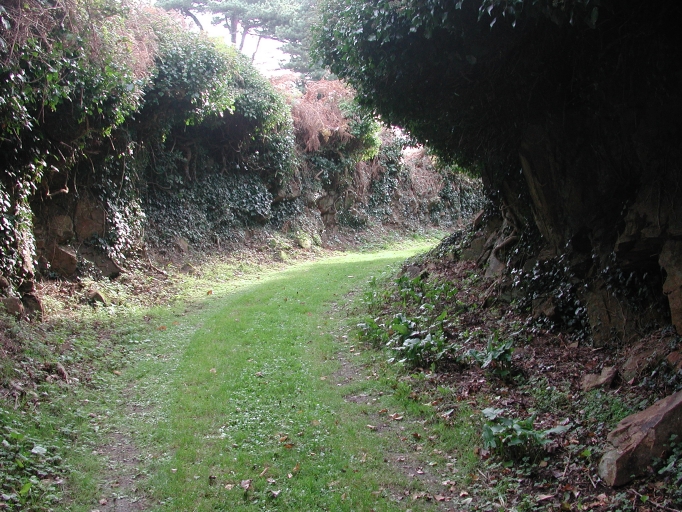 Vue du sentier de l'île où passaient les rails pour approvisionner les fortificationsImmatriculation