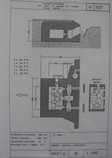 Plan, 1942 : abri pour un groupe de combat de 10 hommes, type H 621 (Service Historique de la Défense)Immatriculation