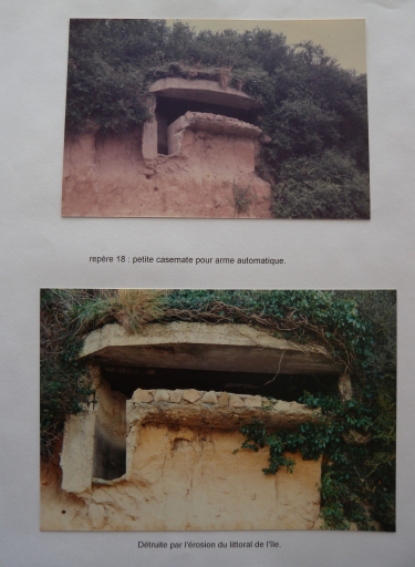 Photographie d'une petite casemate, en bord de falaise, avant sa destruction par l'érosion (Bohée, Alain, collection particulière)Immatriculation