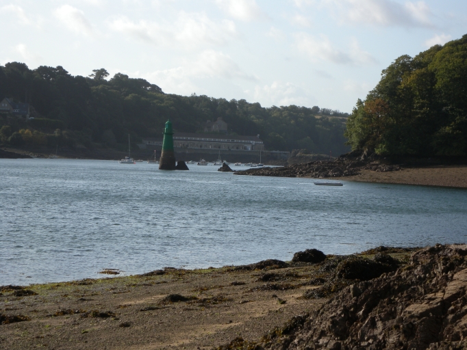 Vue de la tourelle des Perdrix à marée basse dans l'anse du même nom, en aval du port de lézardrieuxImmatriculation