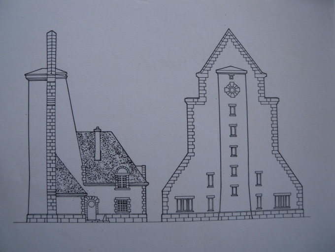 Dessin du phare amer de Bodic en 1950 : élévation Sud-Est (Dessin Jean-Christophe Fichou)Immatriculation