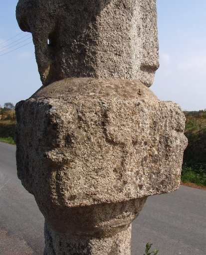 Pierre saillante couronnant le fût amputé : vue détaillée, face ornée d'un calice en bas-reliefImmatriculation