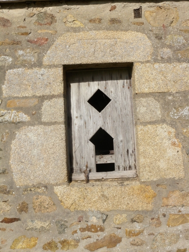 Vue de détail d'une ouverture de la grange Ouest avec la date portée sur le linteau : 1756Immatriculation