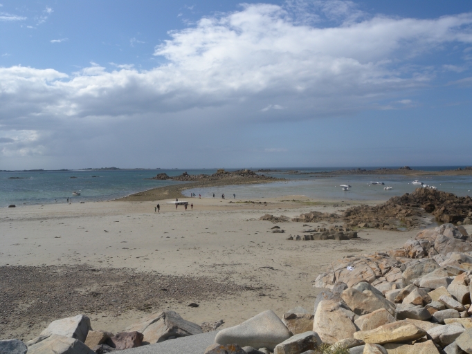 Vue du cordon de galets qui relie l'Île Blanche à la côte avec les enrochementsImmatriculation