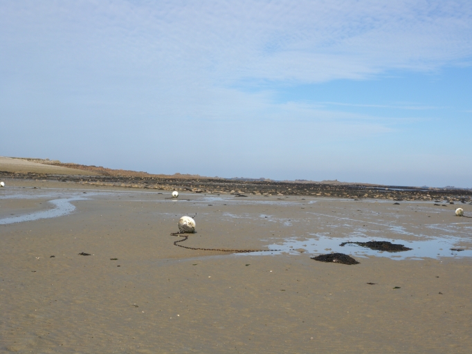 Vue d'une ligne de rocher au Sud-Est de l'Île Blanche, pour les filets de pose (Port-la-Chaîne)Immatriculation