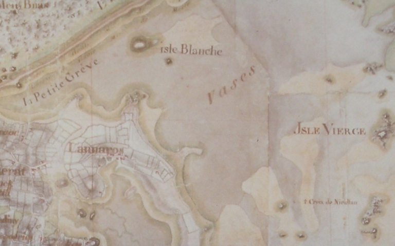 Extrait de la carte des Ingénieurs géographes, 3ème quart 18ème siècle : de la 'Petite Grève' du Sillon à l'Île Vierge (collection particulière)Immatriculation