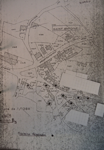 Extrait du cadastre de 1969, B3 : maisons repérées dans le village de Saint-Antoine en 1977 par le SRI (SRI, Mairie de Pleubian)Immatriculation