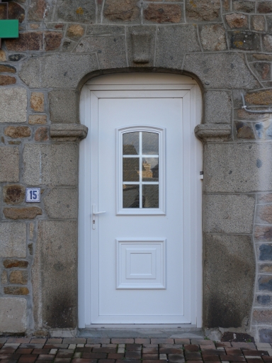 Ouverture traditionnelle avec encadrement et fronton sculptée en pierres de tailleImmatriculation