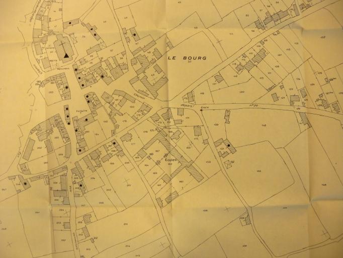 Extrait du cadastre du bourg de Pleubian de 1969, avec les édifice repérés en 1977 (Mairie de Pleubian, SRI)Immatriculation