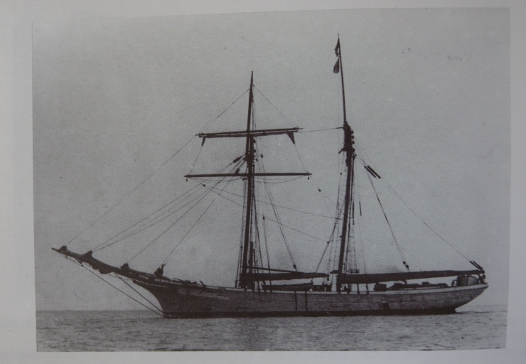 Vue de la goélette 'La Bretonne' en 1937, entrant dans le port de Cardiff, au moteur sur lest (collection particulière)Immatriculation