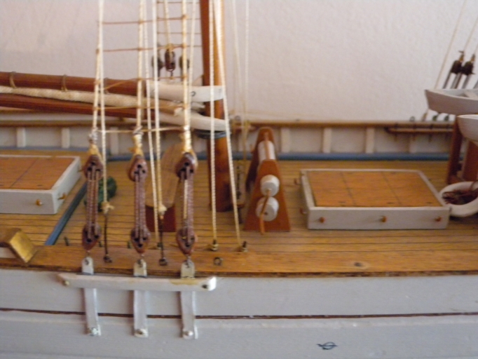 Vue de détail des caps de moutons et du trueil du grand mâtImmatriculation