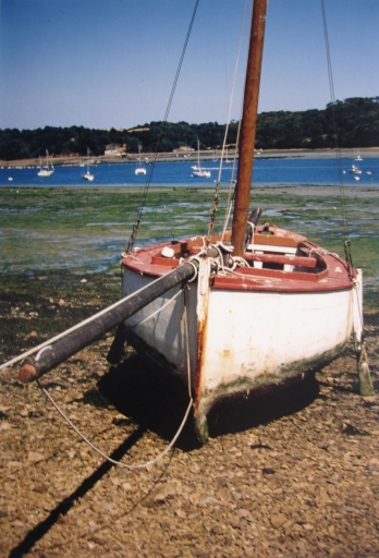 Vue du 'Goéland' au sec, vers 1989 : remarquer les formes tonturées de la coqueImmatriculation