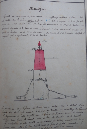 Dessin de la tourelle Men Grenn, à l'entrée de la baie de Lannros (DDE 22, Ponts et Chaussées)Immatriculation