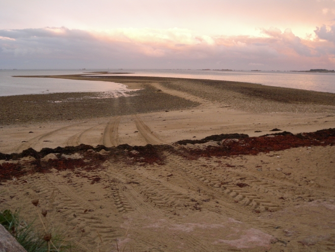 Vue du Sillon Noir à marée basse : remarquer les traces de roue des tracteurs ostréicolesImmatriculation