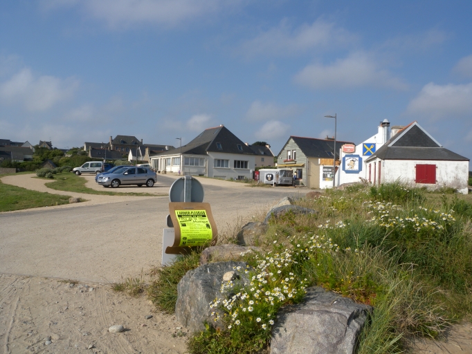 Vue des commerces situés devant le parking en amont de la 'Petite Grève'Immatriculation