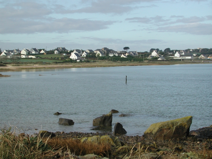 Vue du front de mer bâti de la 'Petite Grève' et du pieu d'amarrage des gabarres et goémoniers, au 1er planImmatriculation