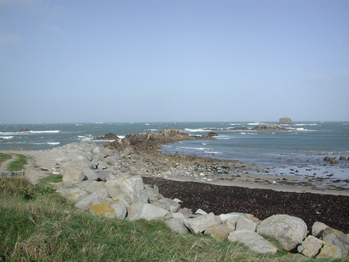 Vue du 1er épi réalisé en 1973, perpendiculaire au Sillon, dont le revers capture le sable et le goémon d'épaveImmatriculation