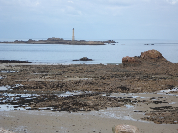 Vue du phare des Héaux de Bréhat depuis le sillon du Talbert à grande maréeImmatriculation