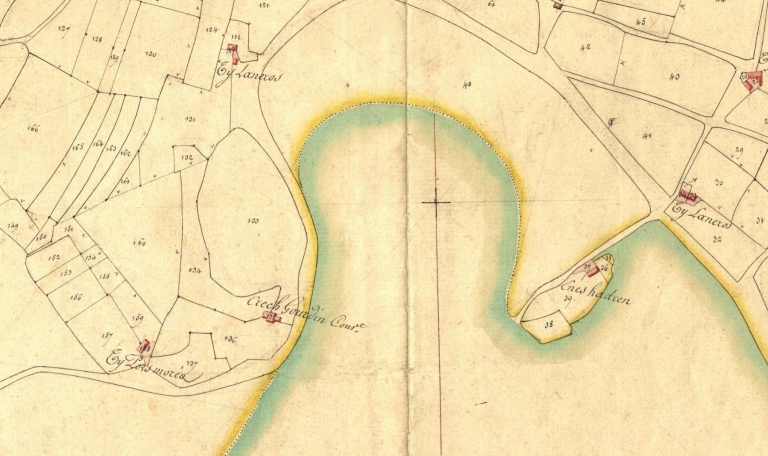 Extrait du cadastre, 1829 : détail de situation de Île Hadren (AD 22)Immatriculation