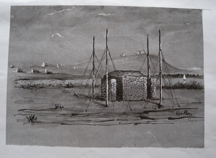 Dessin de Francis Guillou, 1982 : la station radiogoniométrique allemande de Mer Melen, aujourd'hui détruite (collection particulière)Immatriculation