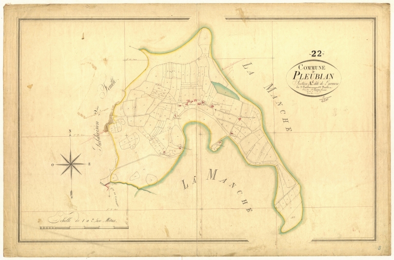 Extrait du cadastre de Pleubian : Lanneros, A1, 1829 (AD 22)Immatriculation