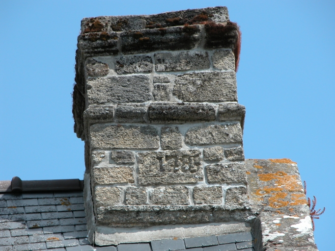 Détail, souche de cheminée datée 1785Immatriculation