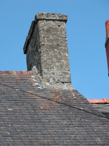 Détail, souche de cheminée droite datée 1834Immatriculation