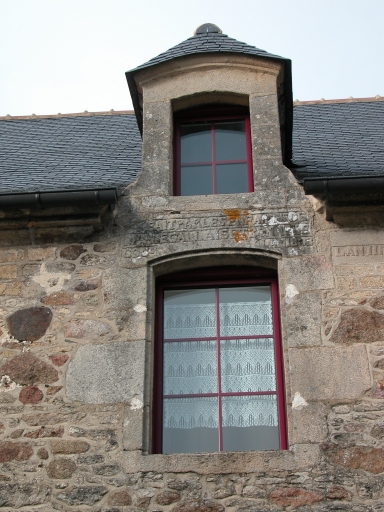 Logis ouest, détail lucarne avec inscriptionImmatriculation