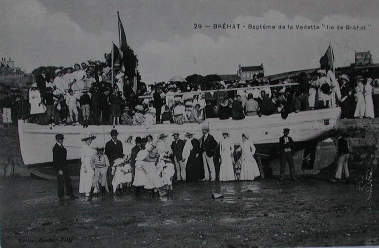Baptême de la première vedette motorisée 'Ile de Bréhat', 2ème quart 20ème siècle, avant guerre (carte postale, collection particulière)Immatriculation